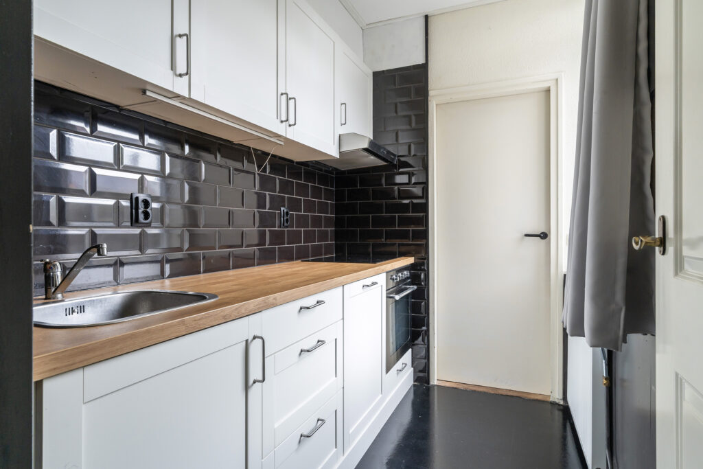 De dichte keuken is in 2022 vernieuwd en uitgevoerd in een modern, tijdloos ontwerp met alle benodigde inbouwapparatuur. Aansluitend vind je de praktische bijkeuken met witgoedaansluiting, ruimte voor extra apparatuur en toegang tot het toilet.