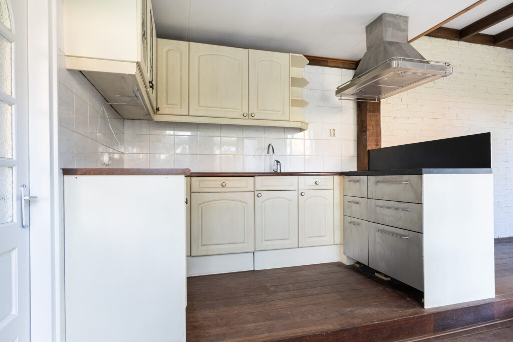 De open keuken (2007) staat in directe verbinding met de achtertuin en de bijkeuken. De bijkeuken van bijna 11 m² is voorzien van witgoedaansluitingen, toegang tot het toilet én een extra kamer die gebruikt kan worden als werkruimte of eenvoudig om te bouwen is tot slaapkamer met badkamer, zodat levensloopbestendig wonen tot de mogelijkheden behoort.