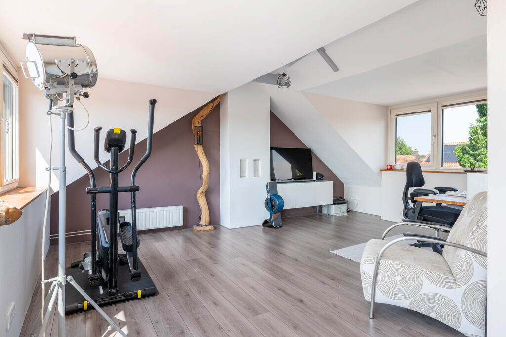 De tweede verdieping is een grote open ruimte met volop mogelijkheden. Richt deze verdieping in als master bedroom, kantoor, hobbyruimte of een combinatie daarvan, de keuze is aan jou. Dankzij de praktische indeling en ruime opbergmogelijkheden kun je hier echt alle kanten op.