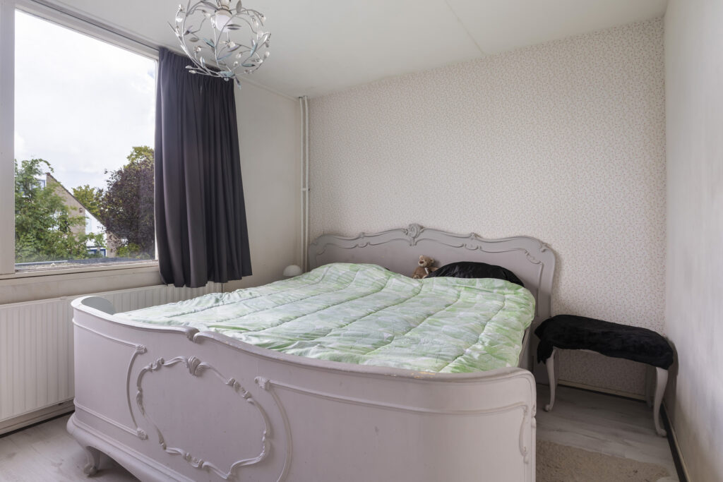 De overloop geeft toegang tot twee slaapkamers, waarvan de slaapkamer aan de voorzijde beschikt over een royale inloopkast (voorheen de derde slaapkamer op deze verdieping). De badkamer is uitgerust met een tweede toilet, wastafel en een ligbad met douche. Via de vaste trap bereik je de tweede verdieping.