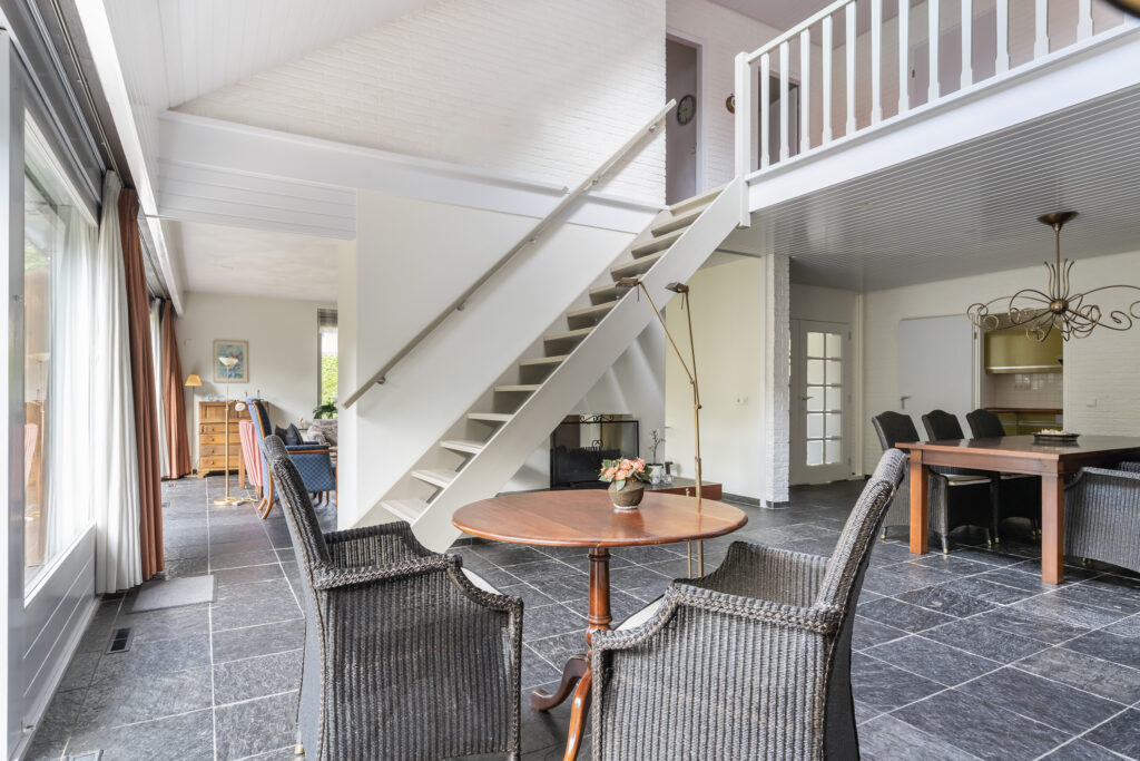 Via de trap in de eetkamer bereik je de e
