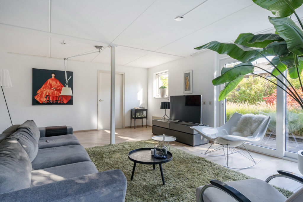 + Royale tuingerichte woonkamer met twee grote schuifpuien;
