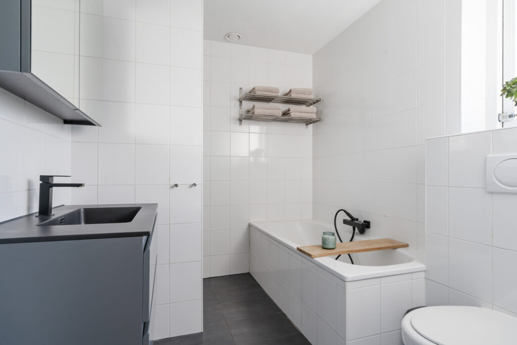 Boven kom je op een overloop die toegang geeft tot twee ruime slaapkamers, een fijne werk- of kinderkamer en een moderne badkamer. Hier kun je heerlijk ontspannen in het ligbad of juist verfrissen onder de douche. De badkamer is verder voorzien van een tweede toilet, designradiator en een stijlvol badkamermeubel.