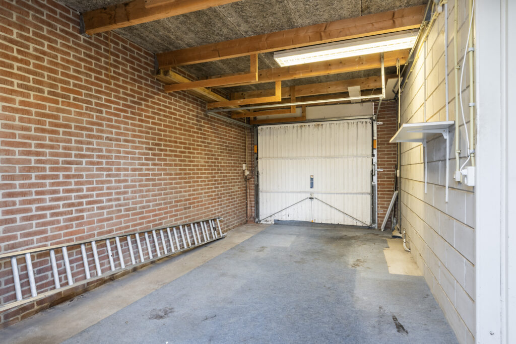 De aangebouwde garage van circa 18 m² beschikt over een eigen achterdeur en is ideaal voor opslag, hobby of het stallen van fietsen. Daarnaast staan er in de tuin nog twee vrijstaande houten bergingen.
