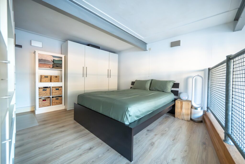 Een vaste trap leidt naar de royale vide. Hier vind je een ruime slaapkamer en een badkamer uitgerust met ligbad/douche en wastafel. De hoge raampartijen zorgen hier eveneens voor een fantastische lichtinval.