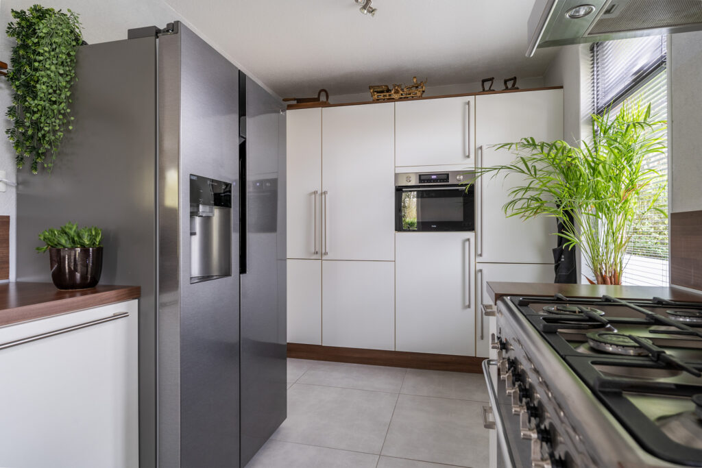Ben jij dol op koken of bakken? Dan word je blij van deze halfopen keuken! Er staat een groot 6-pits gasfornuis en een royale oven klaar voor al je culinaire avonturen. De ingebouwde wasbak, afzuigkap en vaatwasser maken het je makkelijk, en het werkblad biedt genoeg ruimte om samen te koken of gezellig te ontbijten. Door de vele kasten kun je alles netjes opbergen.