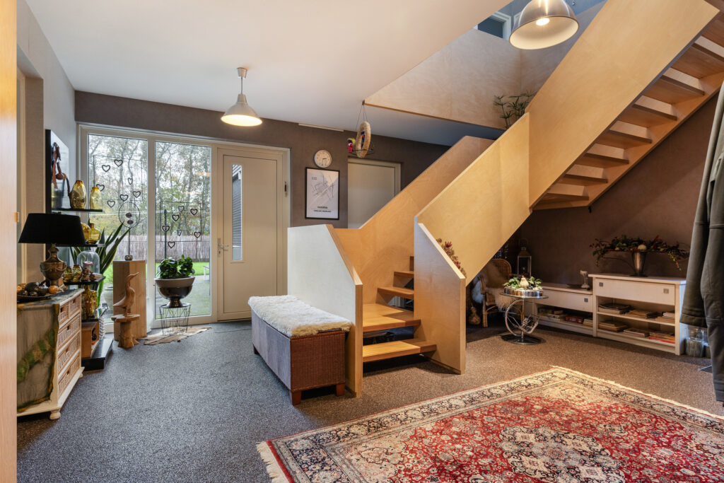 Bij aankomst valt direct de verzorgde uitstraling en de royale oprit op. Binnenkomen doe je droog via de carport. De ruime hal met imposante trapopgang vormt een prachtige binnenkomst en biedt tevens toegang tot de garages.